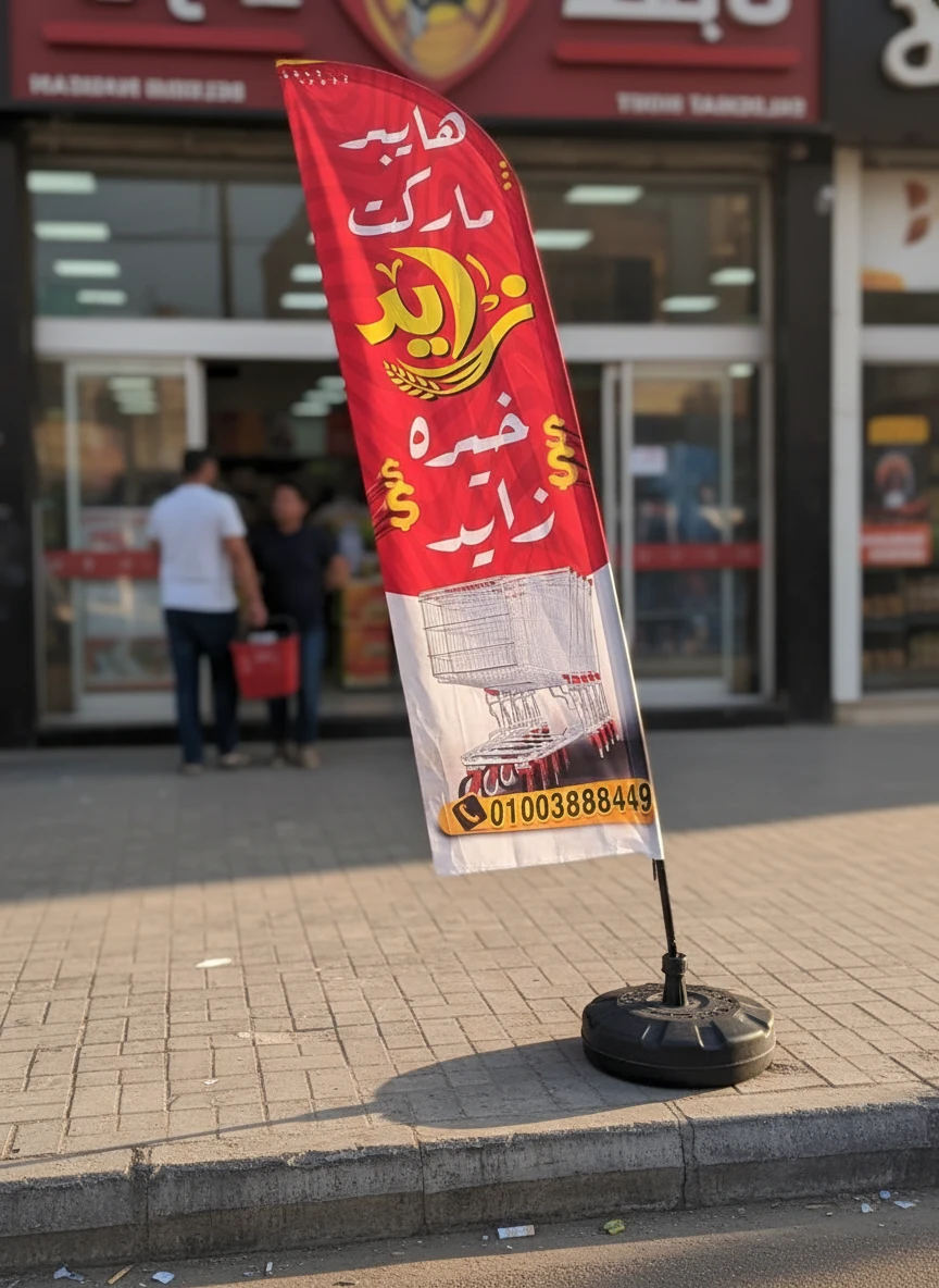 اطلب علم ريشة إعلاني بطباعة واضحة وشكل شيك، وهنصممهولك مجانًا ✨