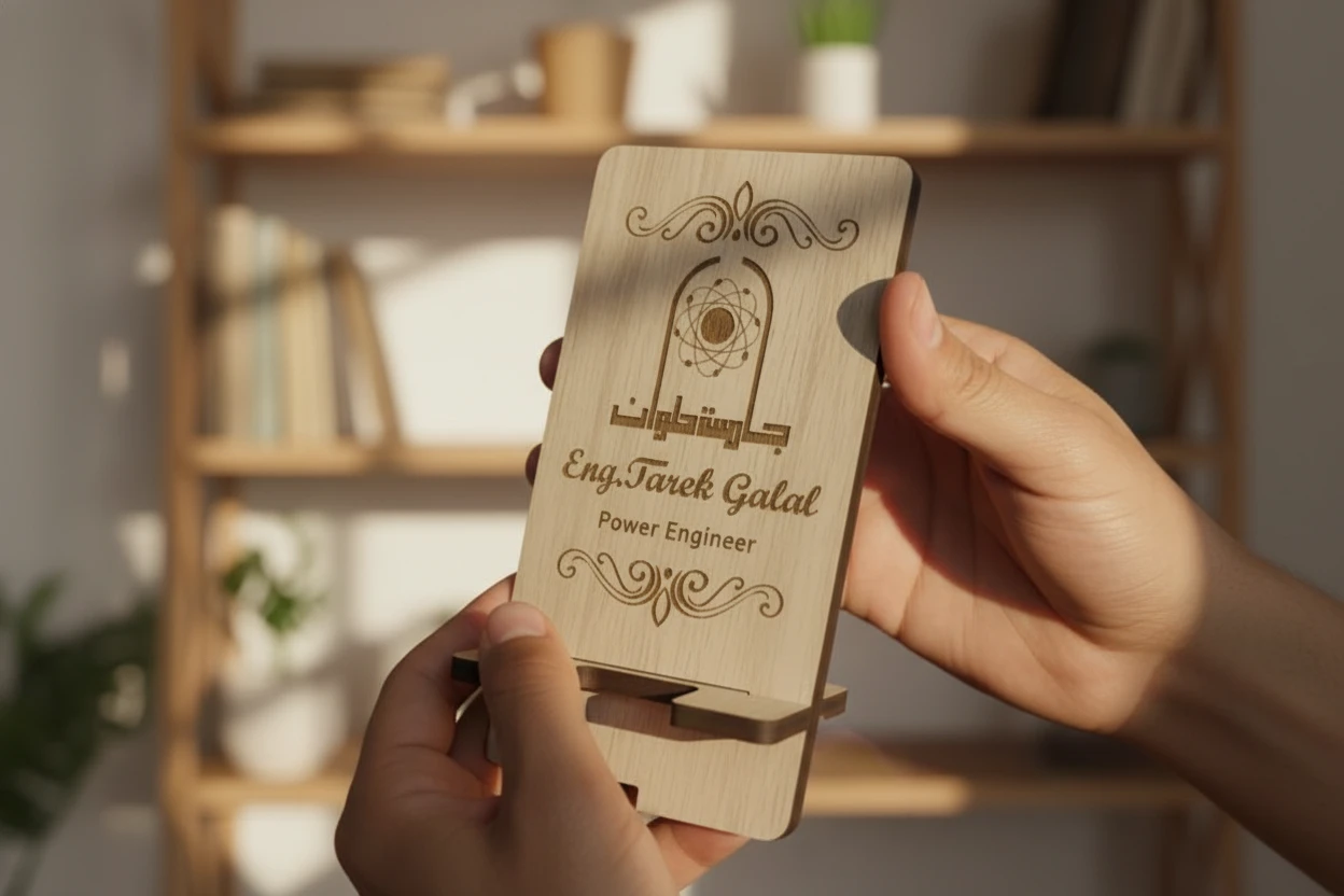 حامل موبايل خشب عملي وأنيق، مناسب لجميع أنواع الهواتف ويمنحك زاوية رؤية مريحة أثناء المشاهدة أو العمل.